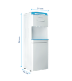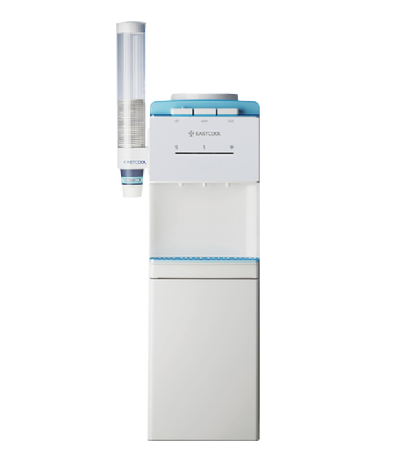 این دستگاه ایستاده به رنگ سفید و یخچالدار مناسب مصارف اداری، تجاری و بیمارستانی، دارای سه شیر سرد، گرم و ولرم و قفل محافظ آب داغ است.