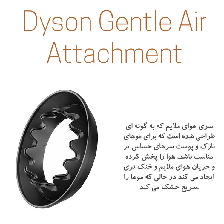 با داشتن صفحه های سرامیک تورمالین در این سشوار هیچگونه آسیبی به موها وارد نمیشود. موتور این سشوار در قسمت دسته آن تعبیه گردیده که چرخش خود را به پره های آن در قسمت فوقانی سشوار انتقال میدهد. این موتور کوچک که در دسته آن قرار دارد قدرت بسیار بالایی را دارد و موها را به راحتی حالت میدهد و آنها را خشک میکند. گفته می شود دایسون برای تولید این سشوار، بیش از 1700 کیلومتر موی طبیعی را مورد آزمایش قرار داده است.