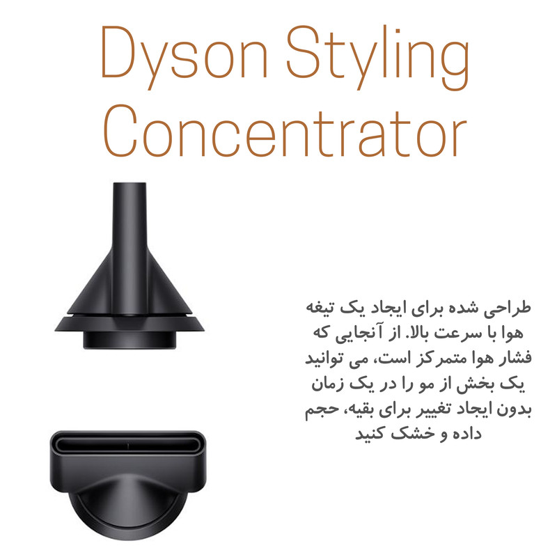 سرعت خشک کردن موها با این سشوار فوق العاده بالاست. علاوه بر خشک کردن موها می توان برای حالت دهی موها نیز از این سشوار استفاده نمود. خشک کردن و حالت دهی بدون استفاده از حرارت از ویژگی هایی است که در این سشوار وجود دارد. ماده خاصی از این سشوار خارج شده و وارد حفرههای خاصی میشود که داخل محصول تعبیه شدهاند. هر یک از این حفرهها کارایی جداگانهای دارند. مثلا یکی برای مواج کردن موها و دیگری برای لَخت کردن آن است. در حال حاضر مالکیت معنوی این طرح به نام کمپانی دایسون در بریتانیا ثبت شده است.