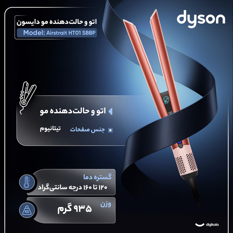 اتو و حالتدهنده موی دایسون مدل Airstrait HT01 SBBP، یکی از نوآورانهترین ابزارهای حالتدهی مو از برند Dyson است که بدون نیاز به صفحات داغ و با استفاده از ترکیب باد گرم و سرد، موها را بهطور طبیعی صاف و حالتدار میکند. این طراحی خاص که در فهرست برندگان طراحی سال ۲۰۲۳ مجله TIME قرار گرفته، تجربهای متفاوت از استایل کردن مو را ارائه میدهد. بدنهای با ابعاد ۶۰×۳۳۰×۴۱ میلیمتر و وزن ۹۳۵ گرم در کنار دسته ارگونومیک و کابل سهمتری، کنترل آسان دستگاه را حتی در استفاده طولانی ممکن میسازد. نمایشگر OLED وضعیت حرارت، سرعت باد و حالت عملکرد را بهصورت واضح نمایش میدهد تا کاربر تسلط کامل بر فرآیند حالتدهی داشته باشد. صفحات تیتانیومی با توان ۱۶۰۰ وات گرمای غیرمستقیم و کنترلشده تولید میکنند تا از آسیب به مو جلوگیری شود. سه دمای قابل تنظیم برای حالت مرطوب (۸۰، ۱۱۰ و ۱۴۰ درجه) و سه حالت برای موی خشک (۱۲۰، ۱۴۰ و حالت Boost) همراه با باد سرد ۳۰ درجه برای تثبیت نهایی مدل مو در نظر گرفته شده است. از دیگر قابلیتها میتوان به یونساز داخلی، سیستم تمیزکننده خودکار، فیلتر قابل شستوشو، خاموشی خودکار پس از سه دقیقه، قفل صفحات، دو سرعت باد و نازلهای قابل جداسازی اشاره کرد. این محصول با کیف چرمی جیر و پد نسوز رومیزی عرضه میشود تا مجموعهای کامل برای استفاده حرفهای و روزمره در اختیار شما قرار گیرد. در نهایت، Dyson Airstrait ترکیبی از طراحی هوشمند، فناوری پیشرفته و مراقبت واقعی از مو است که تجربهای لوکس و متفاوت از حالتدهی را ارائه میدهد.
