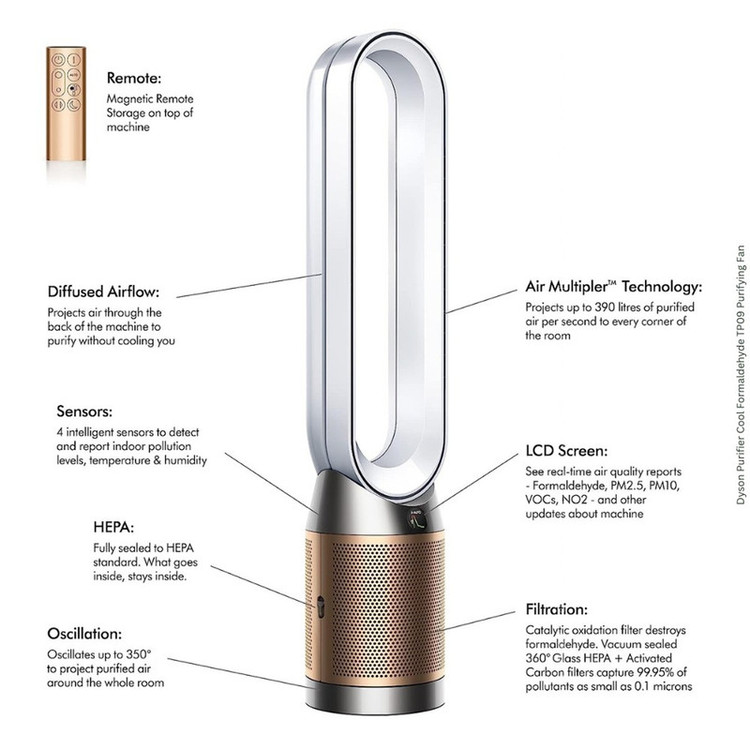 سایر مشخصات : زاویه چرخش: تا ۳۵۰ درجه برای پوشش کامل فضا / تنظیمات سرعت: ۱۰ سطح مختلف / وزن: حدود ۴.۸۵ کیلوگرم / طول کابل برق: ۱.۸ متر / قابلیت کنترل: از طریق ریموت کنترل، اپلیکیشن MyDyson و دستیارهای صوتی مانند Alexa و Google Assistant /