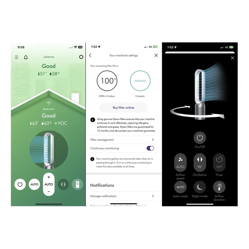 سایر مشخصات : زاویه چرخش: تا ۳۵۰ درجه برای پوشش کامل فضا / تنظیمات سرعت: ۱۰ سطح مختلف / وزن: حدود ۴.۸۵ کیلوگرم / طول کابل برق: ۱.۸ متر / قابلیت کنترل: از طریق ریموت کنترل، اپلیکیشن MyDyson و دستیارهای صوتی مانند Alexa و Google Assistant /