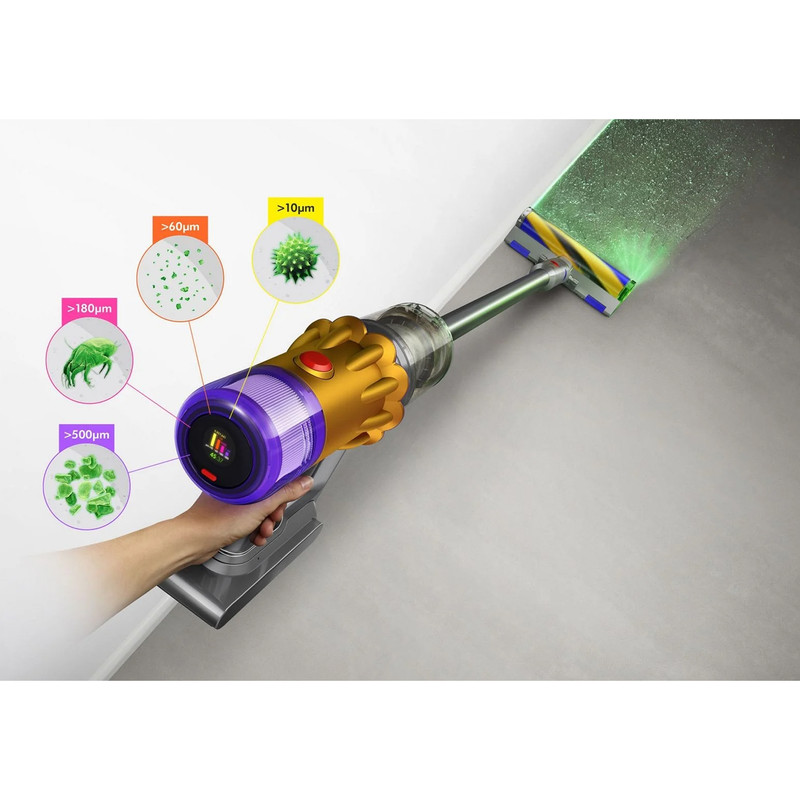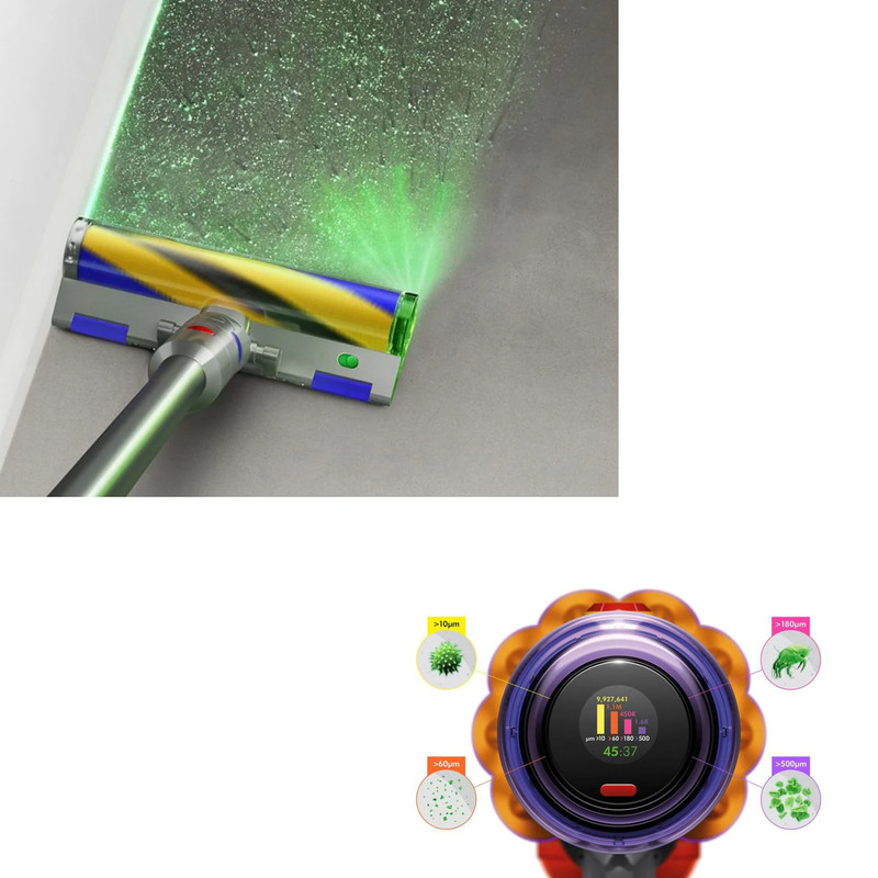 ویژگیهای برجسته :لیزر آشکارساز گرد و غبار: مجهز به سری Fluffy Optic™ با نور لیزری سبز که ذرات ریز گرد و غبار را روی سطوح سخت نمایان میکند و تمیزکاری دقیقتری را امکانپذیر میسازد. سنسور پیزوالکتریک: با شمارش و اندازهگیری ذرات گرد و غبار، دستگاه بهطور خودکار قدرت مکش را بر اساس میزان آلودگی تنظیم میکند. صفحهنمایش LCD: اطلاعاتی مانند میزان ذرات جمعآوریشده، زمان باقیمانده باتری، حالت عملکرد و هشدارهای دستگاه را بهصورت زنده نمایش میدهد.موتور دیجیتال قدرتمند: با سرعت چرخش تا 125٬000 دور در دقیقه، مکش قدرتمندی معادل 150 Air Watts فراهم میکند. طراحی سبک و ارگونومیک: با وزن تنها 2.3 کیلوگرم، حمل و استفاده از دستگاه آسان است و برای تمیزکاری در ارتفاعات یا فضاهای تنگ مناسب است. باتری قابل تعویض: امکان تعویض باتری برای افزایش زمان استفاده فراهم شده است.دارای موتور Dyson Hyperdymium است این موتور دیجیتال می باشد سبک وزن و قدرتمند نیز هست این موتور قادر است که حدود 100000دور در دقیقه بچرخد تا تمام گرد و غبار های میکروسکوپی و زباله های بزرگ رابه راحتی بخورد و خانه شما را تمیز نگه دارد.نوع فیلتر خروجی: HEPA با امکان میکروب ضدایی 99.999 درصد مناسب برای افرادی که از انواع حساسیت ها با آلرژی رنج میبرند.این دستگاه دارای شانه گره زدایی است که به طور خودکارمی تواند موها را از نوار برس جدا و پاک نماید. در این مدل سطل زباله را می شود به آسانی تمیز کرد، فیلتر و برس غلتکی قابل شستشو می باشند، عملکرد بهتری دارند و میکروب ها و ویروس ها و قارچ ها را می توان از بین ببرد و بهداشت خانه بهتر رعایت می گردد.