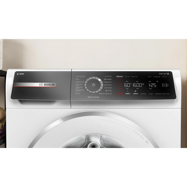 ماشین لباسشویی بوش مدل WGB256A90 دارای سرعت چرخش درام 1600 Rpm (دور در دقیقه) است. ماشین لباسشویی بوش 256A90 دارای ظرفیت 10 کیلوگرم و به رنگ سفید با طراحی منحصر بفرد و جزو سری 8 لباسشوییهای بوش آلمان میباشد. موتور در این ماشین لباسشویی از نوع اکوسایلنس ECO Silence بوده و در طی سیکل شستشو تنها صدای آب را خواهید شنید. رده انرژی +++A در این لباسشویی باعث کاهش هزینه ها شده، درب لباسشویی 256a90 بصورت دوجداره با نمای دور استیل است. اصطحلاک و صدا در ماشین لباسشویی 10 کیلویی بوش 256A90 بواسطه موتور قدرتمند بسیار کم خواهد بود. طراحی مبتکرانه و کاربری آسان رضایت مصرف کنندگان را فراهم میکند. ماشین لباسشویی بوش مدل 256a90 دارای 16 برنامه شستشو و موتور سایلنت است.لباسشویی بوش 10 کیلویی مجهز به دیگ تمام استیل با دارای قابلیت اضافه کردن البسه ی فراموش شده به چرخه شستشو پس از شروع شستشو و سنسور تشخیص وزن و حداکثر چرخش دیگ ماشین لباسشویی بوش آلمان برابر با 1600 دور در دقیقه میباشد. میزان نویز موتور هنگام شستشو برابر با 48 دسی بل و هنگام کار کردن خشک کن 72 دسی بل ماشین لباسشویی بوش سری 8 بدون آسیب به بافت و رنگ لباس میتواند تا 4 نوع لکه رایج بسیار جدی را از بین ببرد. همچنین مصرف آب و انرژی را کنترل کرده و تا 65 درصد زمان شستشو را کاهش میدهد.i-DOS : سیستم دوز هوشمند ، نتایج شستشوی عالی بدون هدر رفتن مواد شوینده و آب. سیستم دوز خودکار i-DOS به شما امکان شستشو با حداکثر کارایی را میدهد. شما فقط یک بار محفظه مواد شوینده و نرم کننده را پر میکنید و حسگرهای i-DOS مقدار دقیق آب و مواد شوینده مورد نیاز برای هر شستشو را به میزان لازم برای شستشو به دیگ لباسشویی اضافه میکند. بنابراین دیگر مواد شوینده را هدر نمیدهید و از چرخههای آبکشی غیر ضروری خودداری میکنید.