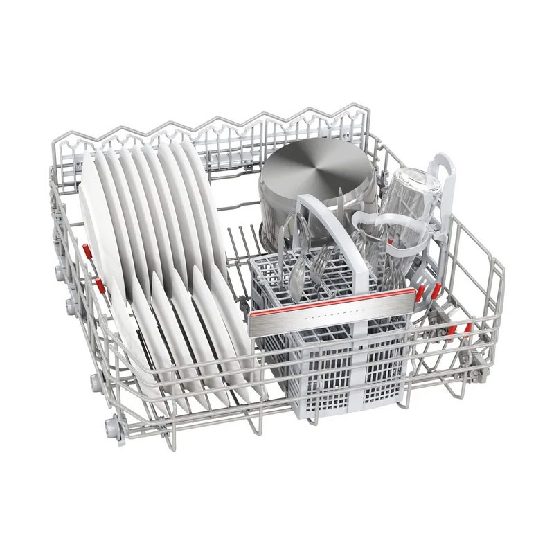 ظرفشویی بوش BOSCH مدل SMS8ZDI86 با رده انرژی +++A جزء سری 8 لباسشویی های بوش بوده که دارای ظرفیت 14 نفره میباشد و حجم زیادی از ظروف را در هر بار استفاده شستشو میدهد. پنل این ظرفشویی شامل 8 برنامه شستشو و 5 برنامه ویژه است. برنامه های شستشو شامل شستشوی قوی، شستشوی اتوماتیک، شستشوی اقتصادی، شستشوی آرام یا شبانه، شستشوی ظروف شیشه ای ، شستشوی سریع و پیش شستشو می باشند. برنامه های ویژه نیز شامل خشک کن اضافی، شستشو با نصف ظرفیت، شستشوی Hygiene Plus ، قابلیت تنظیم از راه دور HOME CONNECT ، برنامه جرم گیر و Vario Speed Plus vh را دارد.ویژگی منحصر به فرد ظرفشویی 8zdi86 قابلیت استفاده با نصف ظرفیت است تا باعث کاهش مصرف آب و برق بدلیل ظروف کمتر از ظرفیت ظرفشویی شود. با فعال نمودن ویژگی Hygiene plus ظروف با دمای بالاتری شسته شده و موجب از بین رفتن باکتری ها میشود. vario speed plus نیز حجم زیادی از ظروف را تا 3 برابر سریع تر از سایر برنامه ها شستشو داده و خشک می نماید. 3 سبد برای قرار گیری ظروف ارائه شده که از سبد پلاستیکی برای قاشق و چنگال و از دو سبد استیل ضد زنگ با قابلیت تنظیم ارتفاع برای قرار گیری ظروف و قابلمه استفاده میشود. فناوری Active water استفاده شده در این ظرفشویی علاوه بر مصرف کمتر آب و انرژی حین شستشو، موجب گردش هدفمند آب، بهبود عملکرد پمپ و گرمایش سریع آب میشود. سنسور load sensor وزن ظروف را اندازه گیری نموده و با توجه به وزن، آب مصرف می نماید. ظرفشویی BOSCH قابلیت شروع با تاخیر داشته که میتوانید از 1 تا 24 ساعت برنامه شستشو را به تعویق بیندازید. توسط این ویژگی میتوانید در زمان دلخواه حتی هنگامی که در منزل نیستید ماشین ظرفشویی را روشن نمایید. توسط سیستم ضد نشت، در صورت نشت آب از ظرفشویی آب به صورت اتوماتیک قطع میشود. قفل کودک تعبیه شده روی این ظروفشویی از باز شدن درب حین کار جلوگیری می نماید.سیستم خشک کن Zeolith: عملکرد خشک کنندگی بدون نقص با استفاده از جریان هوای یکنواخت در سه جهت، حتی برای ظروف پلاستیکی میباشد .
