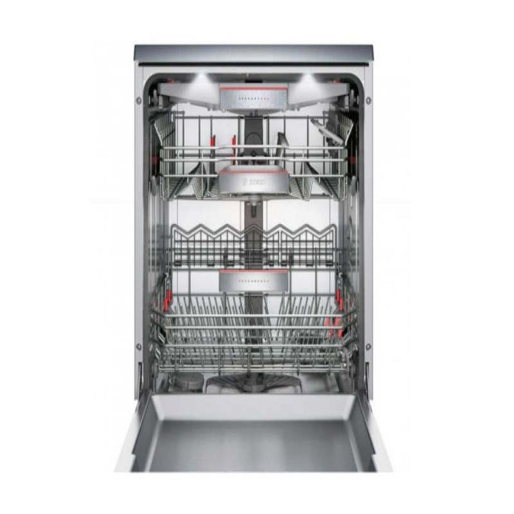 ماشین ظرفشویی بوش با باز دهی بالا و موتور قدرتمندی که دارد به همراه مصرف بهینه انرژی به نحو احسنی پاسخگوی نیازهای کاربران خود می باشد. ظرفشویی بوش مدل SMS6HMW28Q در سال 2021 توسط کشور ترکیه و ظرفیت 14 نفره تولید و روانه بازار شد، که از جمله سری ماشین ظرفشویی های جدید و کارآمد به حساب می آید. این دستگاه فوق دارای 3 سبد مجزا و جدا از هم به همراه یک باکس اضافه طراحی شده است که جزء سری کمپانی بوش می باشد. امکانات بی نظیر و جذایی در ساخت سری 6 به کار گرفته شده است که با این حال از رنج قیمت خوبی برخوردار می باشد. کیفیت ، کارایی و امکانات عالی ماشین ظرفشویی 14 نفره ترکیه با قیمت منصفانه ایی که دارد به راحتی در بازار توانسته خریداران و کاربران متعدی را به خود جذب نماید. قیمت مناسب موجب نشده تا از کارایی آن کاسته شود بلکه تمامی امکانات و مواردی که ظرفشویی های ایده آل دنیا دارند در ساخت این سیستم نیز تعبیه شده است . پیشنهاد ما به شما که دنبال دستگاهی با امکانات به روز و همگام با تکنولوژی های حال حاضر می باشید ظرفشویی سری 6 بوش مدل sms6hmw28q است. سه سبدی که در قیمت بالا به آنها اشاره نمودیم هر کدام برای جا دادن نوعی ظروف می باشند. یکی از این سبدها مخصوص قاشق و چنگال می باشند و دو سبد دیگر برای قرار دادن ظروف همانند بشقاب ، کاسه و ….. تعبیه شده اند. ظرفیت 14 نفره در نظر گرفته شده ، ظرفشویی بوش برای مهمانی های بزرگ و خانواده های پر جمعیت بسیار مناسب بوده ودیگر نیازی نیست تا چندین بار دستگاه را روشن کنیم و از آن استفاده کنیم بلکه تنها با یک دفعه روشن نمودن سیستم می توان تمامی ظرف های کثیف را به بهترین نحو ممکن شست. هنگام استفاده از دستگاه موجود اصلا نگران سرو صدای ایجاد شده نباشید زیرا به گونه ایی طراحی شده که هنگام بهره برداری صدایی بسیار کم به میزان 40 دسی بل را تولید می کند که به هیچ عنوان موجب ایجاد سرو صدا اذیت و آزار شما نمی شود. صدا آنقدر کم است که به جرات می توان گفت دستگاهی بی صدایی می باشد. برند بوش همواره در ساخت ماشین ظرفشویی های خود دیواره و بدنه را عایق نموده و از موتور پیشرفته و امروزه بدون صدای Eco Silence استفاده می کند،که در کنار توان و قدرت بالایی که دارد و اصطحکاک کمی که دارا می باشند از صدایی بسیار کم نیز برخوردار است.
