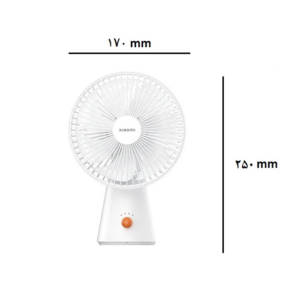پایه های ضد لغزش نیز در قسمت زیرین فن تعبیه شده است تا دستگاه بدون هیچ حرکتی در جای خود ثابت بماند. در زیر دکمه سرعت یک نشانگر باتری وجود دارد، بنابراین می توانید در یک نگاه متوجه شوید که چه مقدار درصد باتری برای شما باقی مانده است. فن شارژی هم یک مدل رومیزی و هم دستی با ابعاد 170×87×250 میلی متر است، بنابراین می توانید به راحتی آن را در حین حرکت همراه خود ببرید.