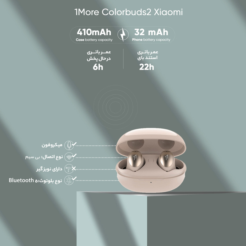 آیا در جستجوی یک هدفون کاملاً بیسیم و بسیار سبک هستید؟ ما 1MORE Colorbuds را به شما پیشنهاد می دهیم. حتما تا کنون با هدفون ها و محصولات بینظیر برند معتبر وانمور آشنا شده اید. کمپانی وانمور سالانه مدل های مختلف هدفون های خود را که دارای ویژگی های متفاوت و کیفیت های فوق العاده هستند روانه بازار میکند.کمپانی 1MORE به تازگی هدفونی کاملا بیسیم و زیایی را تولید کرده است که از نظر زیبایی و امکاناتش با هیچ یک از هدفون های برند های معتبر دیگر قابل قیاس نیست.هدفون بیسیم Colorbuds برند وانمور دارای ویژگی های مختلفی است که برای هر کاربری مورد پسند میباشد. Colorbuds دارای وزن بسیار سبک و ابعاد کوچک است بطوری که هر هدفون دارای وزن 4.1 گرم میباشد.از قابلیت های متعدد هدفون کاملا بیسیم color buds میتوان به چیپست QUALCOMM تعبیه شده در طراحی آن اشاره کرد که با ترکیبش با چیپست بلوتوث ورژن 5 اتصال سریع و پایدار را برای این هدفون تامین کرده است.یکی دیگر از ویژگی های این هدفون کوچک و زیبا قابلیت پخش و توقف خودکار موسیقی است که به طور هوشمندانه با خارج کردن هدفون از گوشتان موسیقی متوقف میشود و با بازگرداندن هدفون به داخل گوشتان میتوان به ادامه ی موسیقی گوش بسپارید.1MORE Colorbuds گزینه ی مناسبی برای استفاده روزمره و البته مکالمه های شما میباشد زیرا با برخورداری از تکنولوژی Dual ENC میکروفون باعث میشود صدای شما بدون توجه به شلوغی محیط اطرافتان در شفاف ترین حالت ممکن انتقال یابد و تمامی صداهای اطرافتان سرکوب شوند.در طراحی هدفون Colorbuds از آرماتوری استفاده شده است که با بالانس کردن صدای موزیک های متفاوت در تمامی رنج ها بهترین کیفیت صدارا در اختیار شما قرار میدهد.باتری ایرفون بیسیم برند وانمور مدل colorbuds دارای طول عمری مطلوب است به طوری که اگر هدفون شما در حالت شارژ کامل باشد شما 6ساعت متوالی بی وقفه میتوانید موسیقی مورد علاقه ی خودرا گوش دهید و با توجه به قابلیت شارژ سریع این هدفون تنها با 15 دقیقه شارژ میتوانید 2ساعت تمام از هدفونتان استفاده کنید.colorbuds همانطور که از نامش هم پیداست دارای رنگ های بینظیری مثل صورتی پاستیلی,سبز نعنایی,طلایی منحصر به فرد و مشکی خیره کننده است که هر سلیقه ای داشته باشید یک رنگ آن شمارا مجذوب خود میکند.