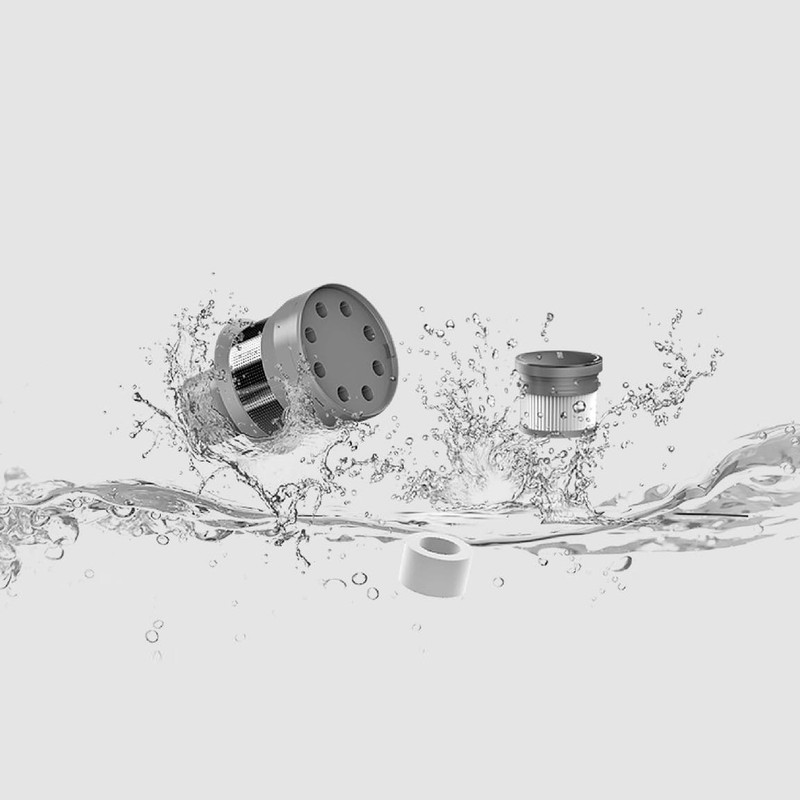 بر روی قسمت بالایی دسته جارو، باتری و محفظه آشغال جای گرفته است. این محفظه تنها 0.5 لیتر گنجایش داشته که برای یک بار کامل جارو زدن یک آپارتمان متوسط کافی است. اما به هر حال پس از هر استفاده باید خالی و تمیز شود. بر خلاف جارو های رباتیک که فیلتر HEPA داخل خود دستگاه قرار گرفته، در این جارو این فیلتر درست بالای محفظه آشغال، در بین مسیر ورودی آشغال ها و خروجی هوا کار گذاشته شده است. این فیلتر قابل شستشو، جاذب ذرات گرد و غبار بوده و از خروج آن ها از دستگاه و ایجاد حساسیت برای افراد آلرژیک کاملاً جلوگیری میکند.